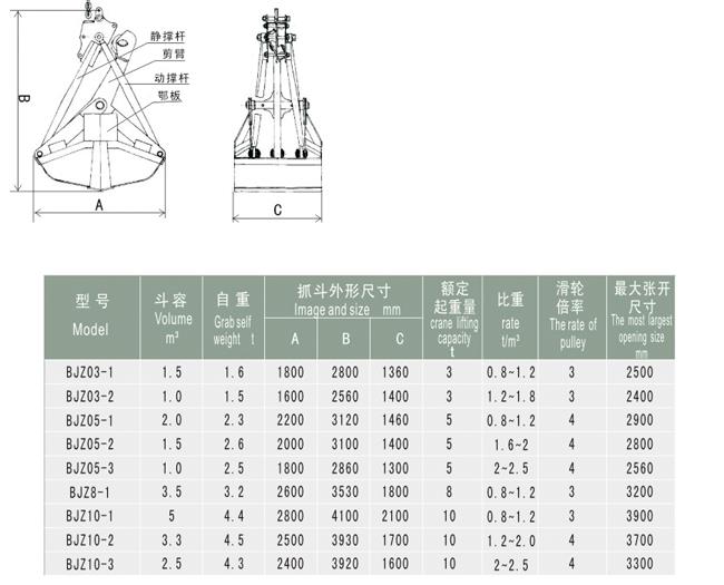 ตัวจับชนิดกึ่งเฉือนเป็นประเภทของการคว้าคานยาวและการคว้าประเภทของแรงเฉือนและการรวมกันของสองข้อได้เปรียบเช่นปลายแขนสังหาริมทรัพย์ที่เคลื่อนที่เสาคงที่และกราม ฯลฯ บานพับส่วนกลางของปลายแขน เป็นบานพับที่ปลายด้านหนึ่งของแขนด้านหน้าของบานพับส่วนกลางของจานกรรไกรและอีกปลายหนึ่งมีล้อเลื่อน ล้อเลื่อนจะถูกยกขึ้นระหว่างการดำเนินงานเพื่อให้กรามถูกปิดจับวัสดุและแรงยึดที่แข็งแรง มันเป็นเรื่องง่ายที่จะเปิดและเหมาะสำหรับการจัดการของวัสดุจำนวนมากเช่นทรายสีเหลืองถ่านหินผงทรายและตะกรันเหล็กสำหรับเชือกเดียวและรถเครนเชือกสอง