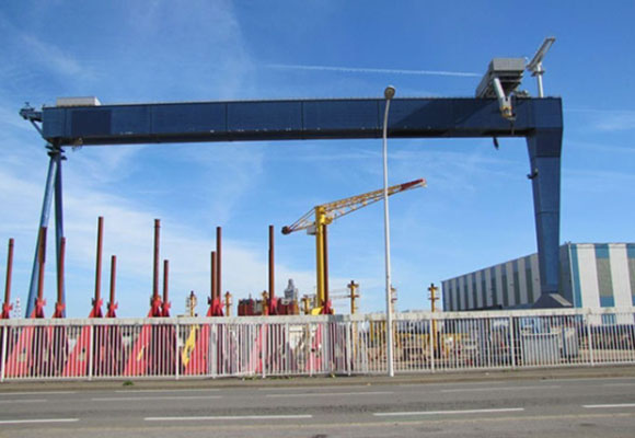 เครนรางน้ำคู่สำหรับการต่อเรือ