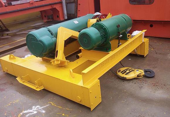 รอกรถรางคู่ใช้กันอย่างแพร่หลายโดยเฉพาะอย่างยิ่งเมื่อยกไฟฟ้าเป็นกลไกการยกน้ำหนักเบาไม่สามารถตอบสนองความต้องการยกมันประกอบด้วยรอกไฟฟ้าล้อและรถเข็น fram5 ผ่านรางติดตั้งบนคานเครนรถเข็นสามารถรับรู้การเดินทางจากด้านหนึ่งไปอีก