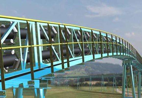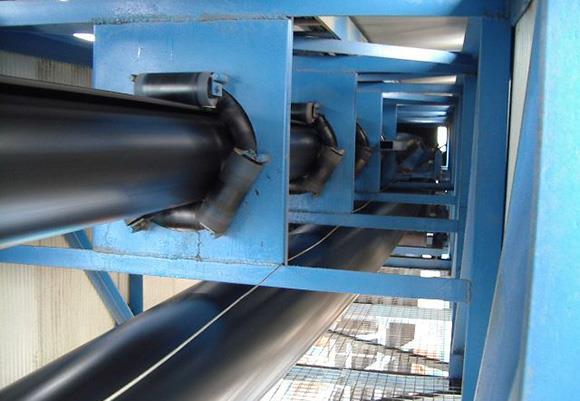 เมื่อสายพานลำเลียงได้รับวัสดุจากส่วนการเปลี่ยนแปลงที่หางของมันสายพานลำเลียงจะถูกรีดขึ้นในรูปทรงกลมค่อยๆแล้วเทปหลอดกลมจะถูกนำไปใช้ในการขนส่งวัสดุในทางที่ปิดสนิทแล้ว, สายพานลำเลียงจะค่อยๆคลี่ออกเมื่อวัสดุถูกเคลื่อนย้ายไปยังส่วนของส่วนหัวจนกว่าวัสดุจะถูกระบายออก