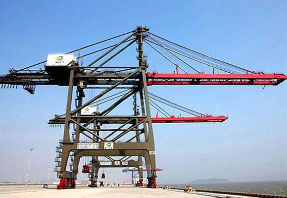 เครนคอนเทนเนอร์ที่อยู่ติดตั้งอยู่ในตู้คอนเทนเนอร์ซึ่งติดตั้งไว้ที่ท่าเรือขนาดใหญ่เพื่อขนถ่ายภาชนะบรรจุที่บรรทุกด้วยเรือไปยังตู้คอนเทนเนอร์ เครนคอนเทนเนอร์ท่าเทียบเรือประกอบด้วยโครงรองรับที่สามารถเดินทางบนรางรถไฟได้ แทนที่จะเป็นตะขอรถเครนมีอุปกรณ์กระจายพิเศษซึ่งสามารถล็อคบนภาชนะได้