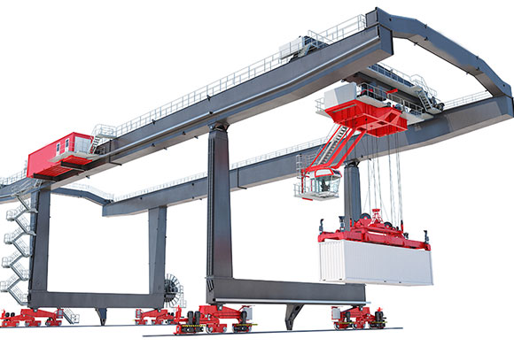 รถเครนโกงกางที่ติดตั้งบนราง (RMG crane) ส่วนใหญ่ใช้ในการขนถ่ายขนถ่ายย้ายและกองซ้อนภาชนะบรรจุในเขตการเปลี่ยนถ่ายของรถไฟและพื้นที่จัดเก็บขนาดใหญ่ ประกอบด้วยคานหลักแขนขาแข็งและยืดหยุ่นกลไกการเดินทางด้วยรถเข็นกลไกการยกกลไกการเดินทางของเครนระบบไฟฟ้าและการเดินเครื่อง